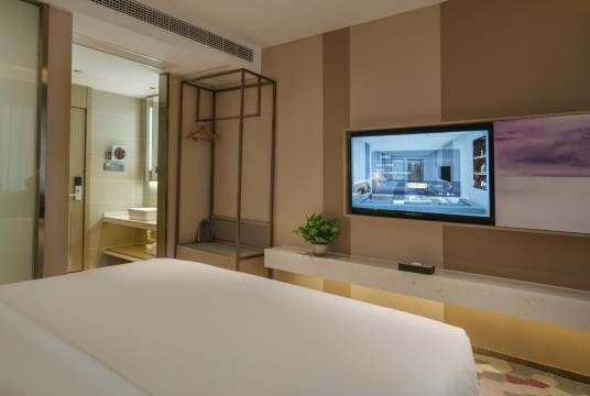 升级了房型很宽敞,两米大床很舒服,房间的空调真的很给力,26度我还感觉冷飕飕的,酒店地理位置也很好,商圈,美食街,大学城,都有,配套设施齐全,早餐,停车场,洗衣房,酒店服务人员也是热情好客,让我有在家的感觉,这个酒店值得让我推荐