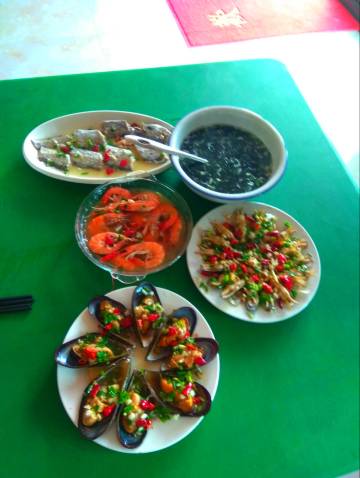 老板态度好,楼下就是大黄沙沙滩,可以免费玩。这一片是村庄,没有饭店,要坐211路两站去东海渔村吃饭。