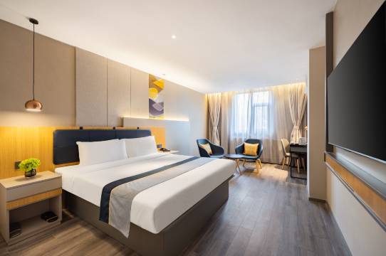 酒店以现代商旅风格打造,地处沈阳交通便利地段,紧邻地铁 4 号线,轻松衔接旅途与城市出行。 周边配套完善,步行可达大润发超市,满足日常采购需求;邻近铁路中学,人文氛围浓厚。搭乘 4 号线 2 站地即到山姆会员店,购物、餐饮、休闲选择丰富。 店内设施一应俱全,智能机器人提供便捷服务,健身房助您保持运动习惯,洗衣房解决出行洗衣难题。每日供应丰富早餐,涵盖东北特色主食、现做热菜、新鲜果蔬、现磨咖啡与营养粥品,兼顾地域风味与均衡营养,为一天活力充电。针对商务旅客,酒店还设有专属服务:公共区域提供免费高速 WiFi 与打印复印设备,设有公共办公桌,满足临时办公需求。 简约质感的商旅设计搭配整洁舒适的客房,为商务出行或休闲旅游的您,提供高性价比的住宿体验。