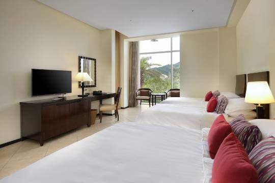房间是双大床,二楼面海,含早餐,送了两天下午茶,两杯免费手沖咖啡,有方便的沙滩和泳池,儿童游戏区,很棒