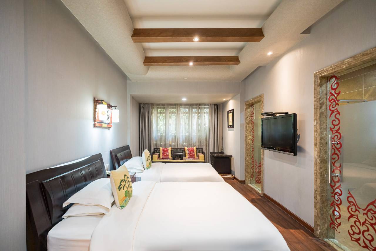 酒店在景区小南门入口,工作人员提前联系告知了路线,离出入口很近很方便。到酒店后办理入住酒店老板给安排了游览路线和演出推荐,很省心。房间卫生不错,都挺好的,值得推荐