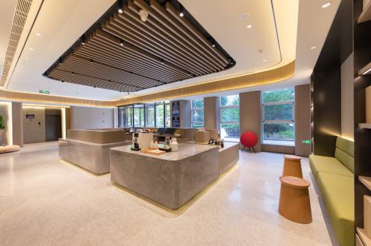 酒店位于总部基地十六区 5 号楼,中环西路和丰科西路交叉位置,地铁 9 号线丰台科技园站出A口向西步行即可到达。万达广场步行8分钟,汉威国际和诺德中心二期近在咫尺,自助咖啡及政和白茶正山小种,农夫山泉矿泉水免费畅饮。中式自助早餐,非转基因大豆现磨豆浆等等;酒店绿树环绕静享私密庭院,商务出差洽谈业务首选。 休闲旅游9号线可换乘8号线换乘2号线,自在畅游京城各大景点。距离汽车博物馆骑行15分钟、距世界公园骑行10分钟, 交通便利:北京丰台站打车10分钟,乘坐 9 号线可直达北京西客站和军事博物馆,荟聚购物中心(欣雅街店)打车15分钟。 酒店机器人送物服务、自助洗衣房、免费健身房、等配套设施。