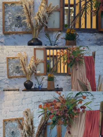 围炉煮茶,烤红薯,滑滑梯,麻将,漂亮的五颜六色的花,还有很多李子,花生