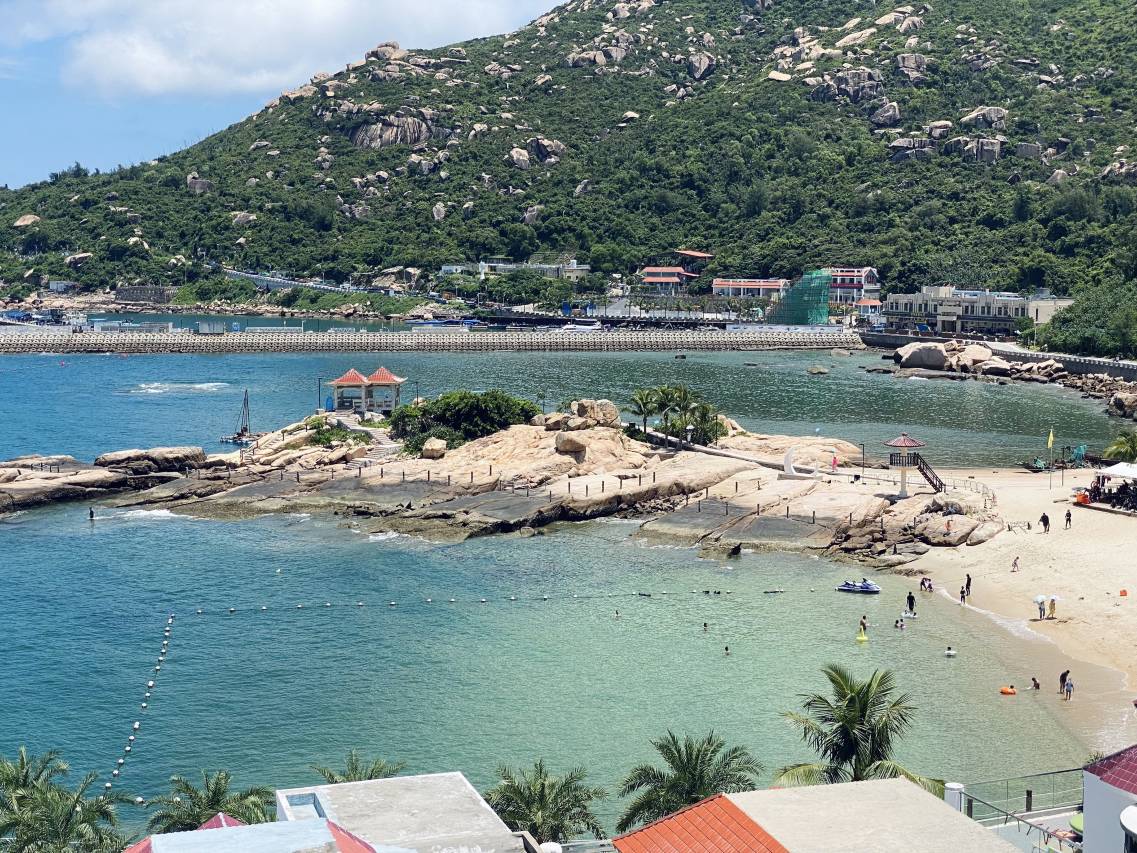 面积不大,但视野不错,刚好可以对着海,下楼往前走会就是沙滩,民宿人员帮拿行李🧳,专车接送
