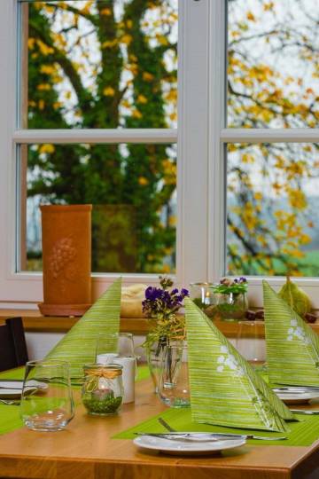 我们把亲戚们安排住在这家旅馆。他们对酒店、餐厅和农场商店都非常满意。餐厅的早餐很棒——全是欧标有机品质——你还能要求什么呢?自制果酱、新鲜水果和有机香肠。一切都很棒。