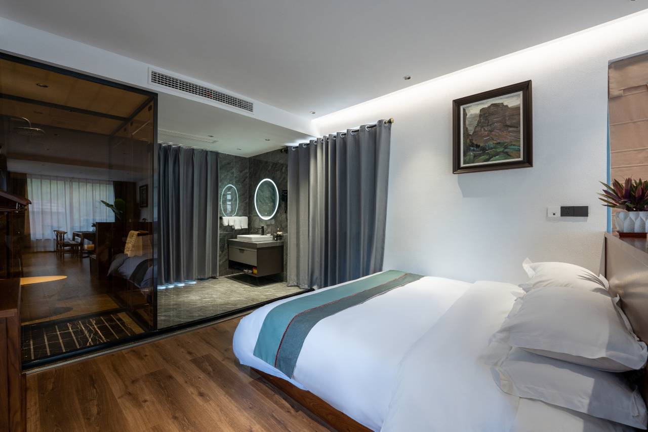 本来订两个双床房,确定了一下入住时间就剩下一个了😭😭于是乎只能再订一个大床房。大床房属于小而精致的,标间则是宽敞明亮型,当然价格也是有差异滴。店里的餐食非常可口,入住后都是在店里吃的,早餐一客一做,贴心且用心。老板和老板娘都特别热心,得知我们是高铁下来打车到店的,来去景点都是他们接送,太感动啦,不认真写这个点评都对不起老板😄作为一个爱狗人士,看店里的黑狼简直可爱到飞起,退房时小家伙还挡在门前,孩子都舍不得走了。还会再来的~
