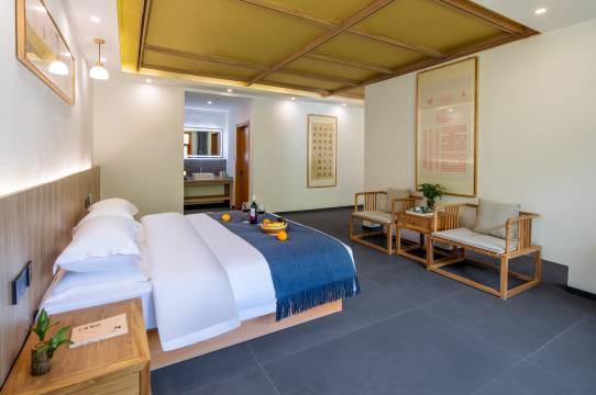 房间很大,榻榻米设计很适合一家四口。景区的车辆预约真的挺尴尬,买了门票才能预约,但我们到达的时候正好是半夜,车子就没法预约进景区。老板人很好,和前台一直轮流给我们打电话,最后从另一个门进去多绕了一个小时的路程。装修还是挺好的,停车场也宽敞,就是小细节的卫生差了点。总共住了三分之一天,退房还送了我们手串,直接带去开光了!