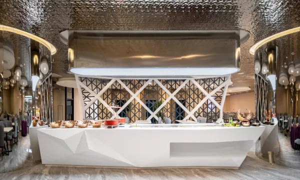 不仅如此,我们还设有尊贵的餐饮享受——铁板烧,让您味觉得到满足的同时,也享受着别样的视觉冲击,为每一位客人烹调出专属您个人口味的菜肴,让宾客在旅途中抹去一丝思念。