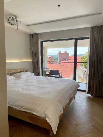 房间简洁干净,有落地窗和阳台,可以在阳台上喝茶。配备智能马桶,加热垫圈很友好。大花洒舒适。离索道站近。店主非常友好热情,介绍庐山小众路线。