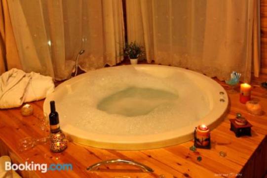 有 3 间空调客房提供壁炉和私人游泳池;您定能在旅途中找到家的舒适。客房设有私人备有家具的阳台或露台。简易厨房配有冰箱、炉灶和微波炉。带有卫星频道的 40 英寸液晶电视可满足您的娱乐需求;同时提供免费无线网络,方便您与朋友保持联系。配备独立的浴缸和淋浴的浴室提供按摩浴缸和免费洗浴用品。
