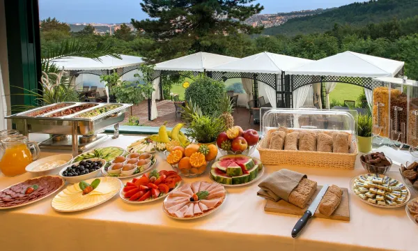 酒店在一个高地上,有个漂亮的花园,餐厅的出品很不错。早餐有4个餐可以选择,不是自助早餐。但味道很不错,餐厅外面的露台,空气清新,俯瞰城市,很美丽。