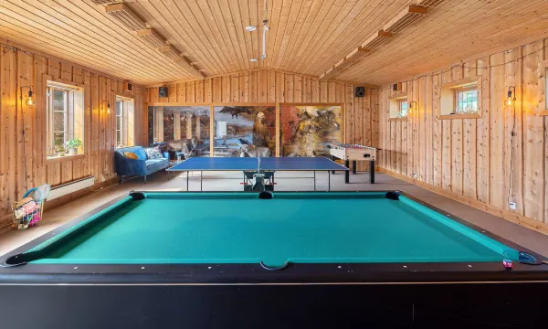 酒店虽小,但还有桌游和桌球,室外还有蹦床,酒店内还有羽毛球拍,在室外的草坪还可以打打羽毛球