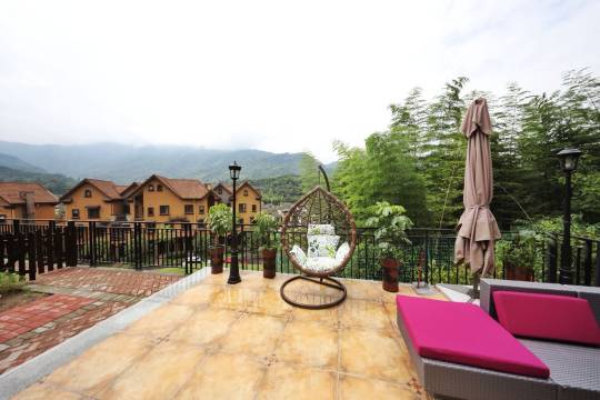 环境清幽,空气清新,庭院宽大,房间装潢美观,清洁也不错,配套设施齐全,客厅和每一间卧室里都有可上网的电视,每一间卧室都有卫生间,卫生间里都是智能马桶。服务态度很好,有耐心,热情周到,很适合一大家人休闲度假。