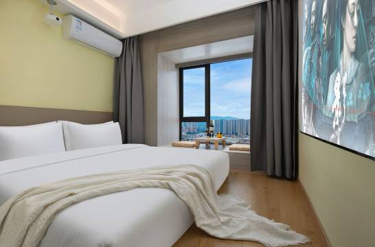 本店的主打风格是以时尚轻奢个性化的装修为调性,用不同的色彩(蓝、红、绿、黑)进行整体色彩搭配,超大幕布和投影,智能化高品质的设施设备对品牌进行升华,致力于酒店宾客目标人群(18-35岁)享受舒适,高品质、高性价比的体验,让客官享受无尽的私人空间,打造一个独属于您的私享家。