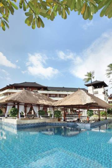 努沙杜亚海滩水疗酒店位于巴厘岛的南半岛,经巴厘岛曼达拉收费公路前往努拉雷国际机场只需 15 分钟。每间客房都采用正宗的巴厘岛装饰,从露台或阳台可欣赏到修葺一新的热带花园或波澜壮阔的大海。 度假村设有 3 个室外游泳池,可直通海滩。设有全套水疗设施、4 间餐厅、4 间酒吧、会议室和室外剧场,宛若巴厘岛上的华美宫殿。