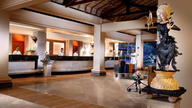 努沙杜瓦地区非常安全离机场也近,每次来巴厘岛走之前都会订这家酒店。大多数工作人员态度很热情,唯独是英语口音很重又非常自信,导致在巴厘岛其他地区都能正常沟通,一到这里就要用到翻译器。宫殿俱乐部的房型一般是包含早餐、下午茶和晚酒的三餐的,菜品很精致。周末和周一晚餐厅还有节目表演,大概八点左右,不吃饭也可以去看看。一个小时有一班去购物村的接驳车,非常方便,推荐购物村里的那家按摩(名字忘记了,就是西门进去第一家,门口有小鱼足疗)在消费偏高的努沙杜瓦地区那家按摩真是性价比极高,按完香香的。