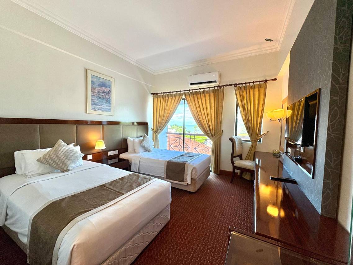 酒店离玻璃市港口码头很近(步行约300米,如果不带太多行李的话,走过去很方便;如果行李多,打车叫E-hailing也才4令吉)。房间很大,带阳台,面朝大海。房间内有熨斗、矿泉水、咖啡和水壶。早餐包含在内,种类丰富味道好(有炒饭、配料齐全的粥、通心粉、烤面包、椰浆糯米饭、煎饼、江鱼仔辣椒酱、麦片、水果、咖啡和果汁)。虽然酒店有点旧,但我住得很满意。去吃烤鱼的餐馆、清真寺、玻璃市港口大桥、彩色村等都很方便。他们还有午餐自助餐,每人15.90令吉。
