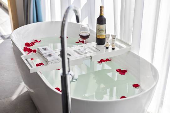 房间很棒,超出了我的预期,这个季节订房性价比高,有欢迎水果,下午茶,晚上还有围炉煮茶,楼下有泳池,冬天楼顶还可以泡温泉。服务非常好,到站车接车送,去景区也是车接车送。很棒的一次入住体验。