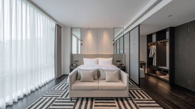 酒店有30-90平米等不同规格的客房拥有舒适、智能的家私,特设亲子房、观影房、行政套房等多种房型满足不同客户需求,彰显个性服务,酒店配有声控窗帘、智能马桶,智能机器人可独立送物给客户,为每一位宾客提供精心、周到的管家服务,优选洗漱用品及床上用品为您创造优越的睡眠环境,酒店独有的私家停车场,保障您的停车便捷与安全。