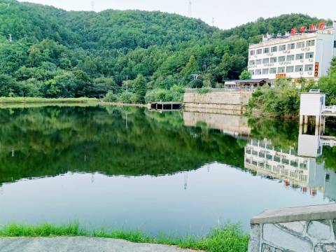 就在水库边,环境不错,饭菜味道不错。缺点是水龙头的水是水库水,没有净化,发黄,不能饮用。不过酒店备有纯净水供客人使用。服务态度好。