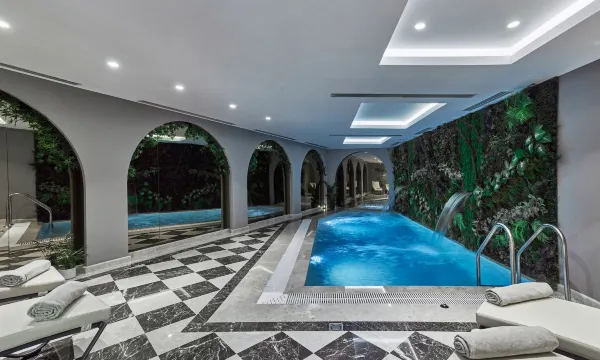 酒店设有小型水疗中心。晚上在桑拿房和土耳其浴室暖暖身子,然后再去泳池游泳,感觉非常棒。