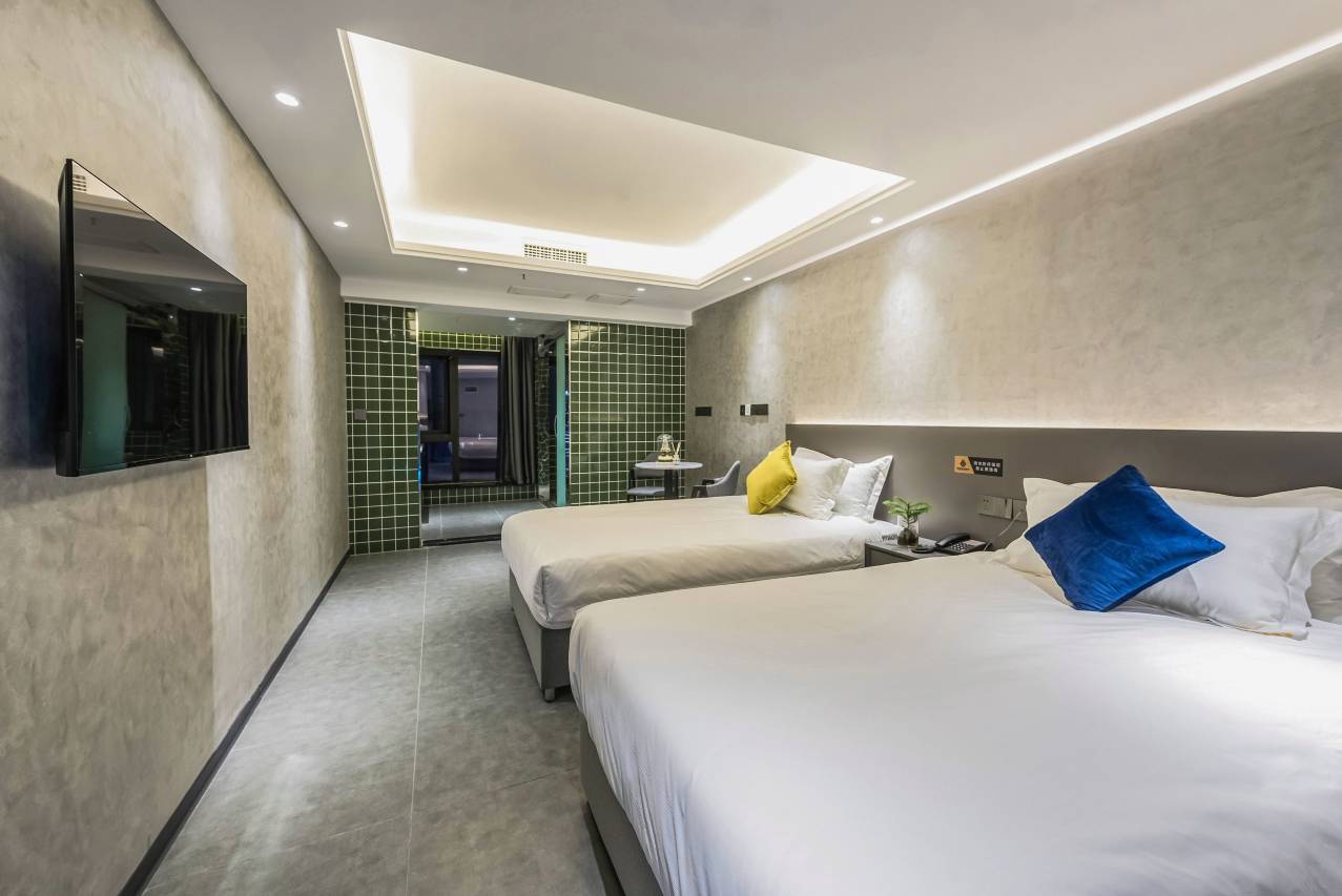 五人间三张单人床,一张双人床(只有一床被子),半夜睡觉了想拿一床被子,被告知没有了,好家伙,这么大一个酒店缺被子,还有就是浴室玻璃像个透明玻璃。