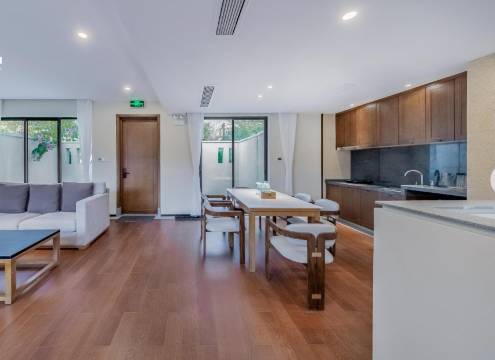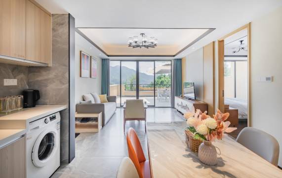 可能是春节期间,服务有待加强,微信上沟通迟缓,别墅区里面环境佳,但一出去就遍地垃圾,破坏心情,不讲究服务的话带狗很合适,有大露台,绿化率高