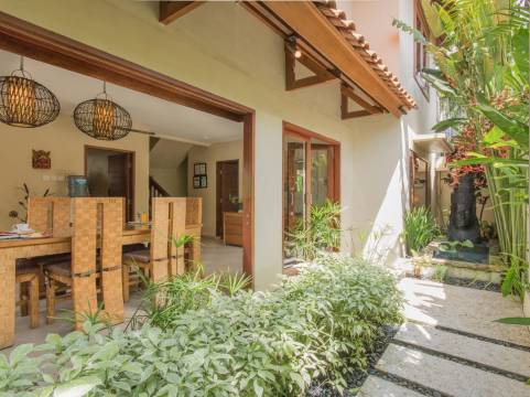 巴厘岛 Seriska Seminyak 别墅位于水明漾日落大道,距离水明漾广场只有 2 分钟车程,且距离Waterbom 巴厘水上乐园有 6 分钟车程。 此家居型别墅距离达博希克斯海滩 1.2 英里(2 公里),距离勒吉安海滩 1.9 英里(3 公里)。