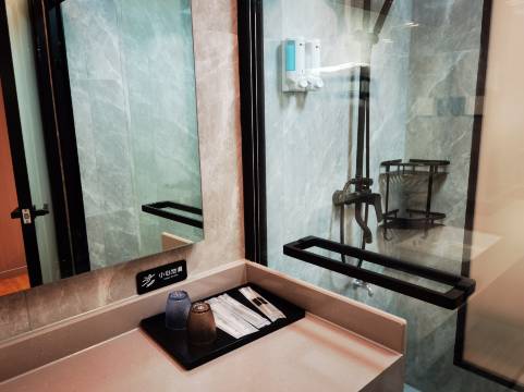 双床房空间宽敞,床区、办公区、卫浴区互不干扰,卫生间采用玻璃隔断,干湿分离很不错!还配置书桌座椅,烧水壶和瓶装水,满足办公、饮水需求!酒店看起来都很干净,下次出差还选择这家!