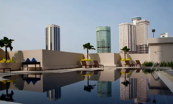 干净卫生,有2个小哥帮忙拿行李,还会帮忙开门,还有游泳池,出门走几步就是地铁站,可以直接坐车去kl站,直接转大巴去机场,酒店也很干净,非常好