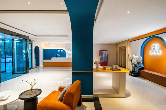 该酒店位于一天主道边,对面是灵宝市妇幼保健院,门前有停车位,能带宠物。出门左手边是一家胡辣汤馆,吃早餐方便。大堂挺清新,前台服务算行吧。房间大小适中,干净卫生,设施简单够用,床品舒适,能深度睡眠。有些用品维护差了些。 比如:1)洗脸池下水管漏水, 2)卫生间门开启时,响声很大。 另外,浴室和卫生间的门是朝向床的,感觉很怪。总之,该酒店性价比很高,适合自驾游入住。