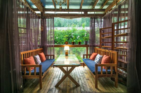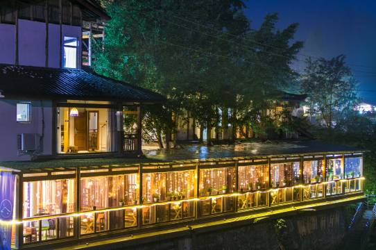 自家的独栋四合院请优秀的设计师进行改造,毗邻后山售票处,一享青城天下幽,最美河边公区,可吃饭,可依偎河风喝茶。