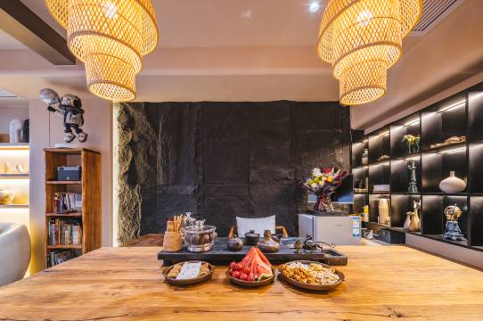 很不错的名宿,有好几个观景平台,可以荡秋千,可以喝茶,可以聚会吃饭,店面有很多艺术饰品和绿植,很有品味很有情怀的老板,品质感很棒。刚开始联系快要到酒店,老板提前派车在检票口接送,刚进房间,老板提前开好了空调和淡淡的香水味,太舒服了,太舒服了,夏天的炎热让我到房间太凉爽了,刚好到九华山的时候处于端午节,老板娘晚上贴心准备了茶水,水果,还准备了粽子,我是比较在乎住宿的人,真的很有回家的感觉,很轻切,一切都安排的很好很好,第二天早上我5点多起来,就看到阿姨在准备早餐,早上吃过早餐,老板又来车送到了我们想去的地方,九华山交通管制期间不能开车上去,老板说,任何地方,你说你累了,不想走了,给他一个电话就去接我,妈耶,太贴心了。最后我自己到了游客中心,老板开车最后送过来了行李,啥也不用说了,感谢,感谢相遇,也感谢老板对我们游客细心的照顾,体验感直接满分💯