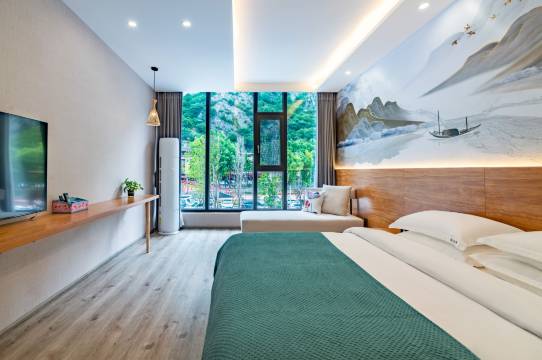 房间干净整洁,有电热毯,离景区比较方便啊,离景区比较近啊,然后吃饭也很方便,周边很多吃的奶茶这些都有。距离上车点也很近,五六十米就可以了,服务非常好。