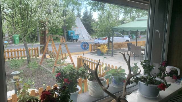 在景区里,车停门口拿行李很方便。第二天老板给带了早餐,直接走去看驯鹿
