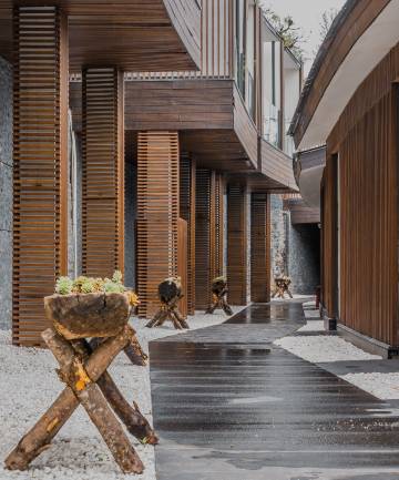 酒店的建筑风格是摩梭风情与现代酒店设施的完美结合。单间、标间温馨浪漫,透着浓浓的摩梭风情;