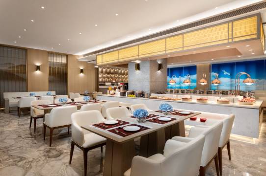 漓餐厅,以漓江为名,旨在将大自然的馈赠和桂林的风味,完整的呈现在您眼前。酒店采用的是新融合菜式,中式西式应有尽有。中式菜品更符合桂林风味的包容性,既有粤菜的清雅精致,又含湖南菜的鲜香咸辣,还有广西少数民族特色烹调,精心融汇成您不容错过的优质菜品。