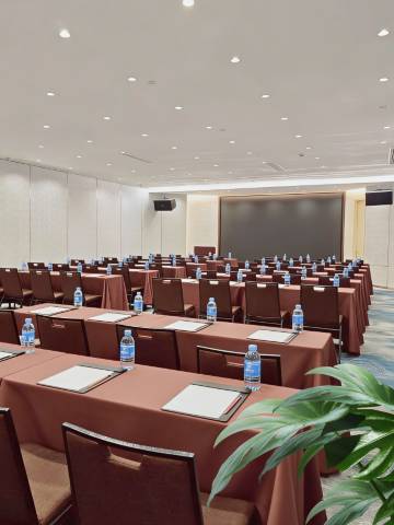 酒店座落于山水秀丽的桂林市高新区,周边商圈林立,交通便利。从桂林两江机场到达酒店大约需要45分钟车程,距离高铁桂林站,桂林北站大约25分钟左右车程。酒店距离高新万达广场、南城百货不远,吃喝玩乐一站式服务应有尽有。来桂林怎能不看山水?酒店距离桂林市徽,象鼻山景区不到20分钟车程,七星岩、独秀峰景区亦在象山景区附近,群星环绕,流连忘返。相信您在前往酒店的沿途已然欣赏了一部分山水风貌,也了解了一些些桂林的母亲河——漓江。漓江是一条蜿蜒又清澈的江河,穿越城区,向南奔流至桂林阳朔县,阳朔山水甲桂林,如您有兴趣,乘船即入画,到阳朔方休止,一定能成为您絶佳的旅游体验。在桂林城区体验两江四湖景区的夜景会是您了解漓江千面的一个切入点,江水湖水环绕桂林城区细细流淌,让桂林有中式小“威尼斯水城”的既视感,但不同于欧洲的蓝,桂林是山之翠,水之碧。绿水青山才是金山银山,从酒店东行便能到达“漓东百里生态环保示范带”,既要展示山水之美,也要着手用心呵护,在这条示范带,您能感受人与自然的和谐共生。
