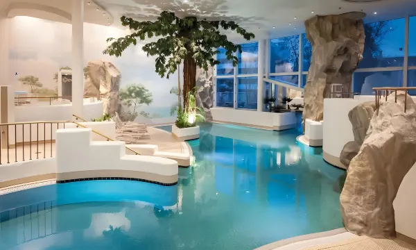 酒店位置绝佳,几步可以到达小镇最漂亮的区域。酒店主要客户是老人家来休养。停车很方便。酒店内设施非常豪华,温泉泳池,桑拿及公共休息区环境不比外面的温泉浴场差。进入德国,桑拿区是不分男女**,去桑拿区要尊重他们的习俗,放不开就不要进入桑拿区。