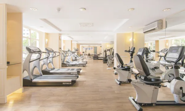 酒店的健身房器械还挺多的,还有室外泳池!