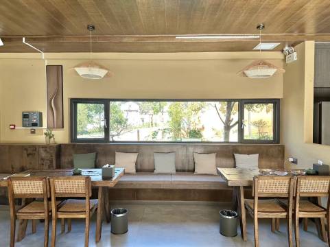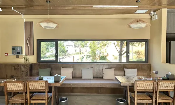 朴宿山舍,听名字就仿佛感受到了这里的禅意,充满着淳朴而安静的气息,居山而行,田园幽静。这里的装修简洁大方,既有现代感,又很好地融入了当地特有的闲境气质。不论是土砖搭建的墙面以及围墙外葱绿鲜嫩的草木植物,还是室内榻榻米以及原木色的桌板,无不透露着这里独有的神韵。通过大面通透的观景窗,我们可以近距离享受自然带给我们的馈赠。