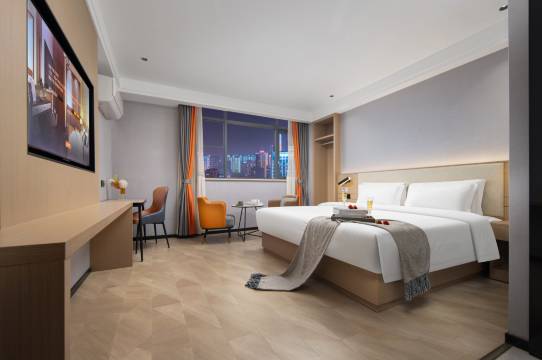 【酒店亮点】全国知名连锁,免费停车场,百寸巨幕投影,免费健身房(跑步机,哑铃,仰卧起坐机等),免费自助洗衣,全景阳光窗户,乳胶床垫,免押金免查房,负离子空气净化,免费矿泉水畅饮,免费大厅小零食,免费独立包装一次性口罩,免费提供满足日常生活用品需求的百宝箱(指甲刀,卸妆布,眼镜纸,发卡,启瓶器,针线包等等),免费机器人服务,送餐送物带客进房。