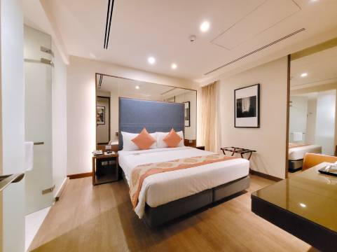 酒店位置绝佳,就在市中心!离娜娜站很近,去哪儿都很方便。而且周围有很多吃饭的地方,夜市也只要步行3分钟。Terminal 21购物中心也很近,步行5分钟左右。房间很舒适,床垫也特别舒服。工作人员热情周到,彬彬有礼。我和朋友订了两间房,两间都很舒适。唯一的缺点是房间没有窗户,导致空气有点闷热潮湿,还有一股奇怪的味道。我强烈建议酒店经理添置一些空气净化器来改善这个问题。客房服务人员在退房时尝试开门通风,但效果并不理想。