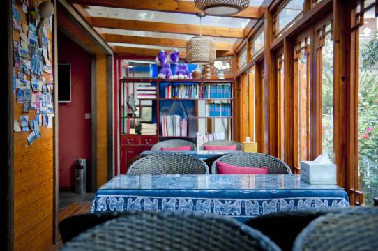 客栈座落于桂林市中心繁华地段与市内核心景区中轴线,交通方便。背靠闻名中外的公园,仅5分钟步行时间,毗邻小东江,酒店对面的訾洲公园与桂林城徽-象鼻山隔河相望,的大型天然游泳场就在訾洲公园旁。周边生活气息浓厚,东江果蔬集市,邮局,火车票代售点,银行等便利的生活硬件设施一应俱全。独栋别墅的中式私人庭院以及公共区域的西式壁炉装修风格让你产生空间上的错觉,热闹中有静谧,静谧中有生活。