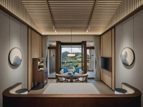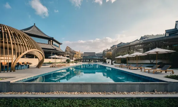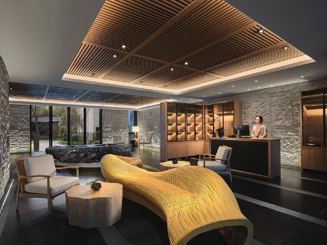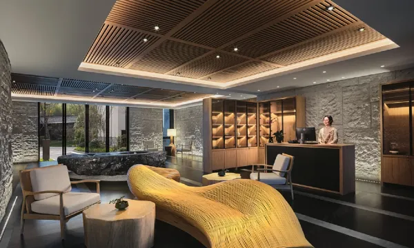 天目山都喜天丽酒店位于4A级天目山自然生态区,放眼远眺山峦连绵起伏,停僮葱翠,清泉叮咚,百鸟鸣唱,西天目山植被覆盖高达95%以上,大自然馈赠的天然氧吧,素有“大树华盖闻九州”之美誉。这里是以静谧、康养、人文为特色的高端度假酒店,为尊贵的商务和休闲宾客提供轻奢的身心休憩之所。