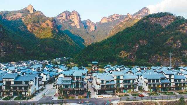 神仙居景区南门附近的高端别墅型酒店,豪华套房装修风格简约典雅,酒店依山傍水,推窗即能看到绿水青山,田园风光尽收眼底……