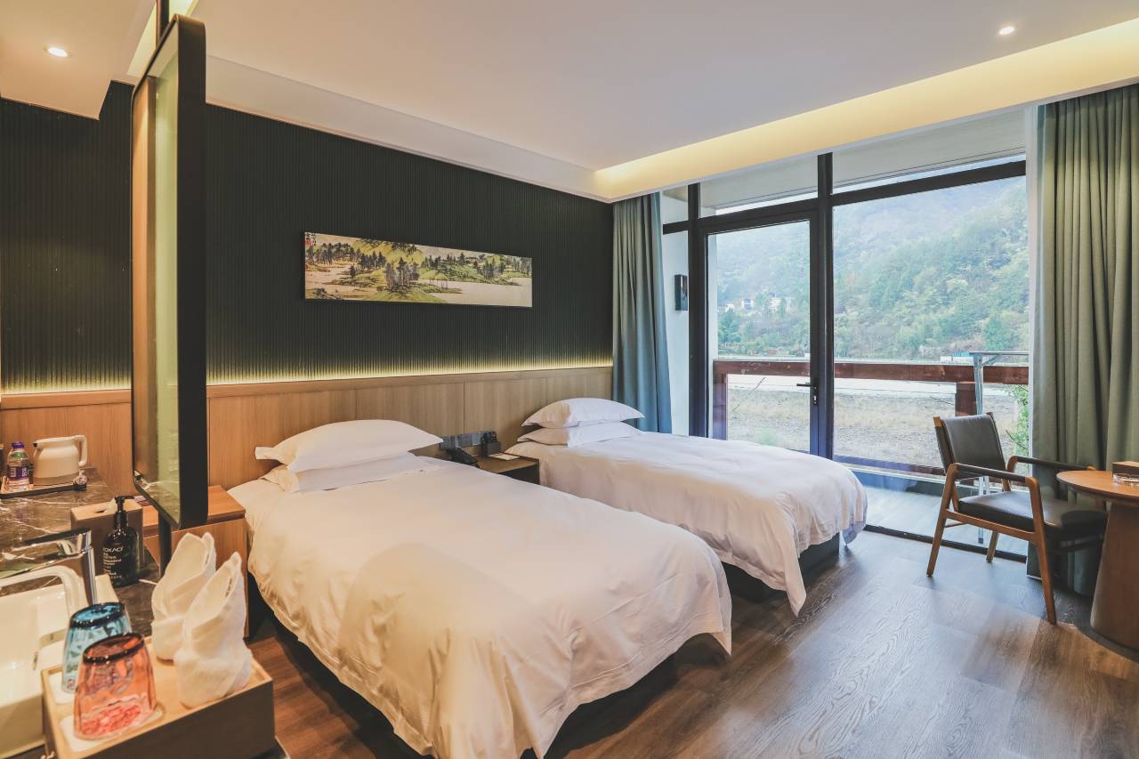 我们一家三口订的是普通标间,给我们免费升级了家庭亲子房,房间格局卫生非常好,舒适度直接拉满,前台小姐姐服务质量绝对5分,热情,专业,待人亲切!酒店门口是一条小溪,背面靠山,早上起来风景非常不错!仙气飘飘,还有就是地理位置,离神仙居很近,如果碰到节假日可以第一批道,不用排长队!下次有机会再来!