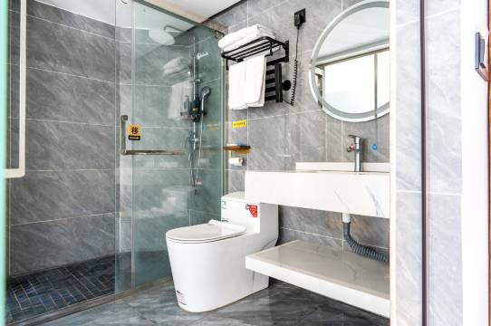 必须给个五星好评,来人民医院看病就在附近搜索酒店,周边配套齐全,还是在美食街中心。而这家酒店房间布局好温馨好出片,颜色搭配太好看了。干净整洁卫生舒适宽敞明亮。床睡的舒服 电动窗帘遮光效果非常好 ,有恒温功能的坐垫智能马桶也不落下,双重隔音玻璃白天也能睡个好觉。非常好的一家酒店 还有沙发床。小圆桌和凳子 出差办公都非常方便。以后来崇左会经常住这家酒店 !