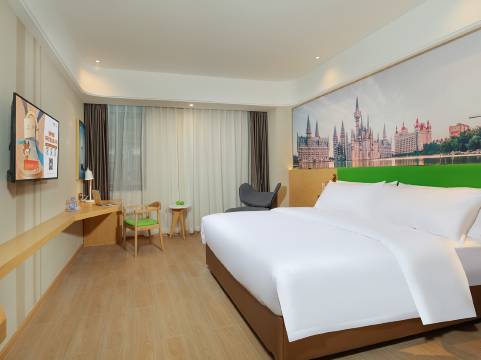 房间很干净卧具整洁,晚上非常安静,中央空调给力去的那天39度,室内非常凉爽,这里要说一下前台小姐姐,服务相当贴心细致,当时我们在平台上订的房间有一点不满意,前台小姐姐立刻给我们免费做了升级,这个必须点赞,酒店有人值守停车场也非常方便就在酒店旁边,酒店距江边只隔一条马路看夜景很方便,晚上江对面全是美食,我们去的大宅门,菜品口味正宗价格不贵,吃完沿着嘉陵江边散步看了皇泽寺夜景,很漂亮,总之体验感非常棒。