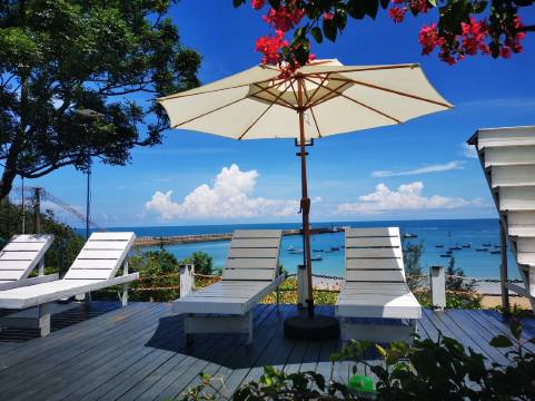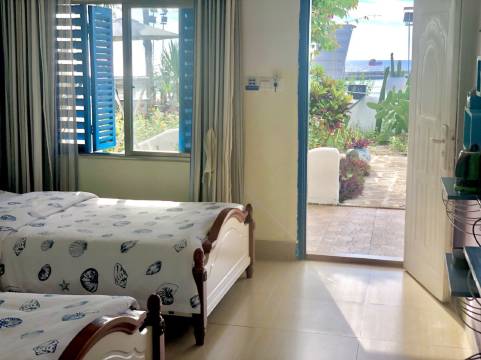 希拉的房子处于西角码头和网红打卡圣地幕崖之间,相隔500米,民宿设计风格以地中海蓝白调为主,共一层9个全海景房,以海边沙滩一步之隔30米,在房间躺着就能享海,看海听浪,院子超大种满鲜花,蜂蝶成群,鸟语花香,浪漫充满爱意,房子三面是香蕉果园,正面为一望无际的大海,每天听浪潮入睡,早上鸟叫起床,百雀争鸣,这里没有大城市的吵闹更没有小街小巷的人流量,更多的是那份享受大自然和放松……